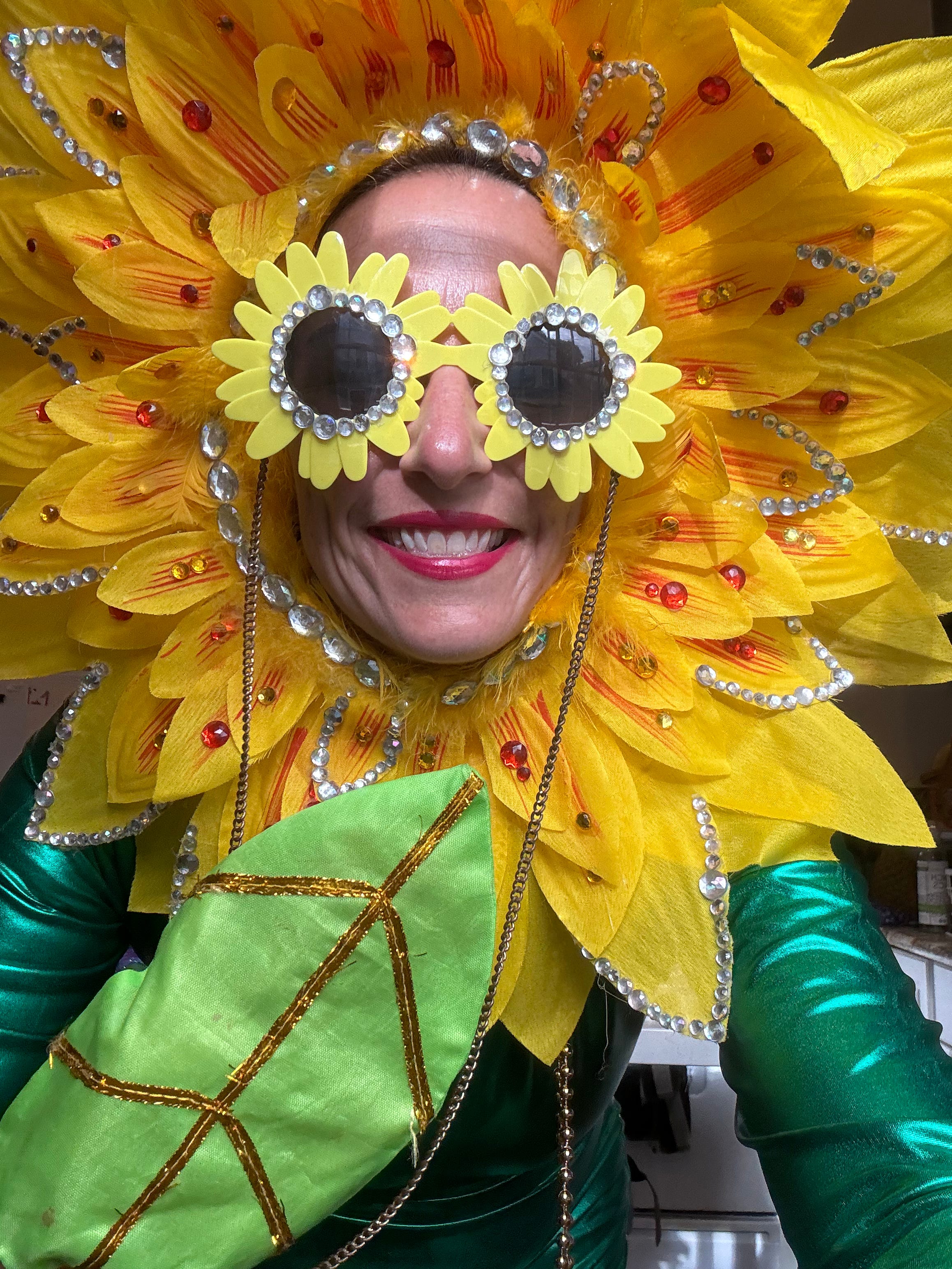 I dressed up as a sunflower on Mardi Gras day—a last minute call this year even though it’s a go-to costume of mine.